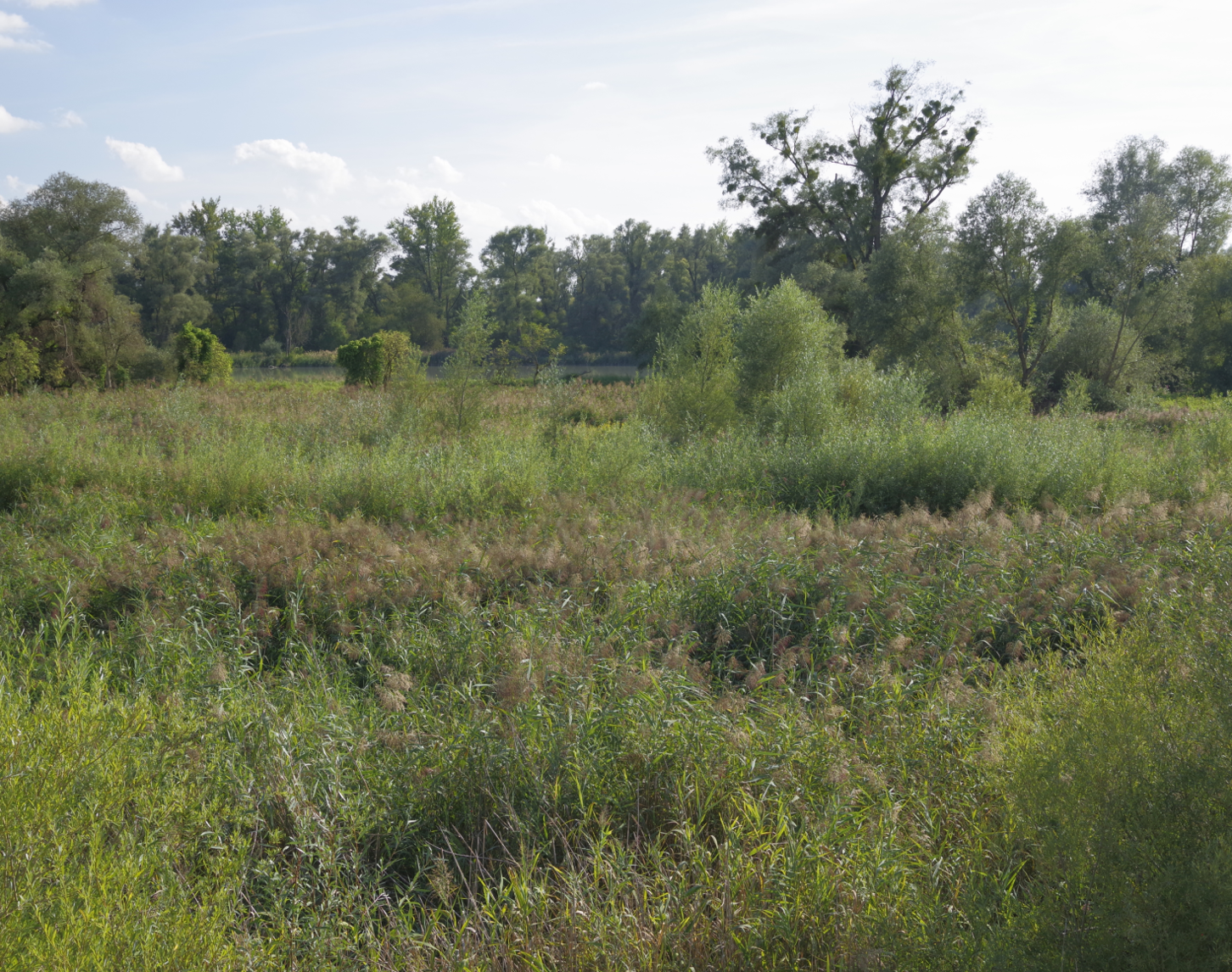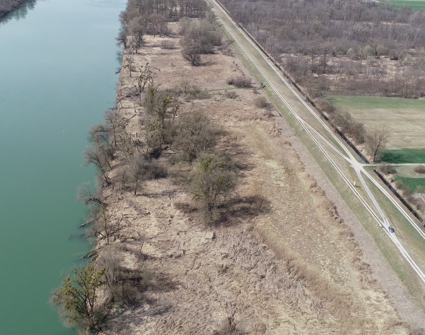 The Aufhausener Lacke was a standing water body on the left bank of the Inn between river kilometres 44 and 42. It has been dry all year round since 2022 due to siltation and reeds are beginning to overgrow the area. Decades of sand input during Inn floods caused it to dry up, and now the Aufhausener Lacke is completely silted up. As the residual dynamics in the floodplain on the water side of the dams are not sufficient to flush out the sediments again, structural measures must be taken here.